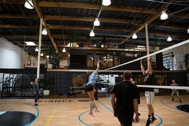 Stance 把球场和办公室设置在了一起,在标准篮球场旁边就是一个由黑色集装箱垒成的办公楼。为了方便观赛,集装箱专门设置了一个走廊露台,K8凯发官网入口首页可以清晰地看到楼下的情况。