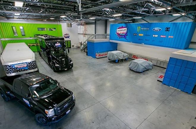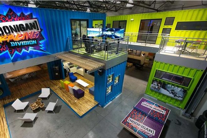该设施位于犹他州帕克城,生动地描绘了GYMKHANA策划者所在的工作场所一个 12000平方英尺的设施,平均分为两个空间,利用17个回收的集装箱建造一个可重复使用的工作空间。