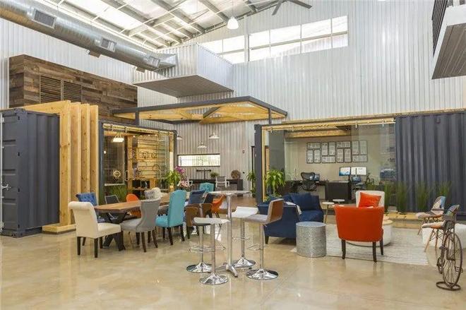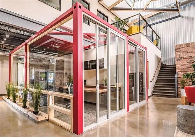 共享办公室,设有灵活协作的工作区、独立会议室、私人办公室、接待区、休息区和厨房等。其中,独立会议室、私人办公室等都会设置在一个个独立的集装箱中,经过落地玻璃的改造之后,从而使集装箱满足办公场所使用需求。