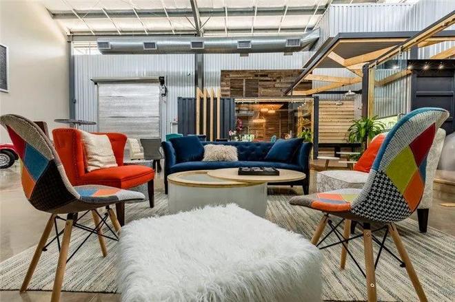集装箱作为一种灵活的建筑材料,拥有多种组建方式。你可以整个堆叠使用,也可以切割、拆解使用。当加上了再生木材、玻璃、钢材、颜色、纹理和外露天花板的组合之后,便成了一个多维元素和现代时尚的新型建筑物。