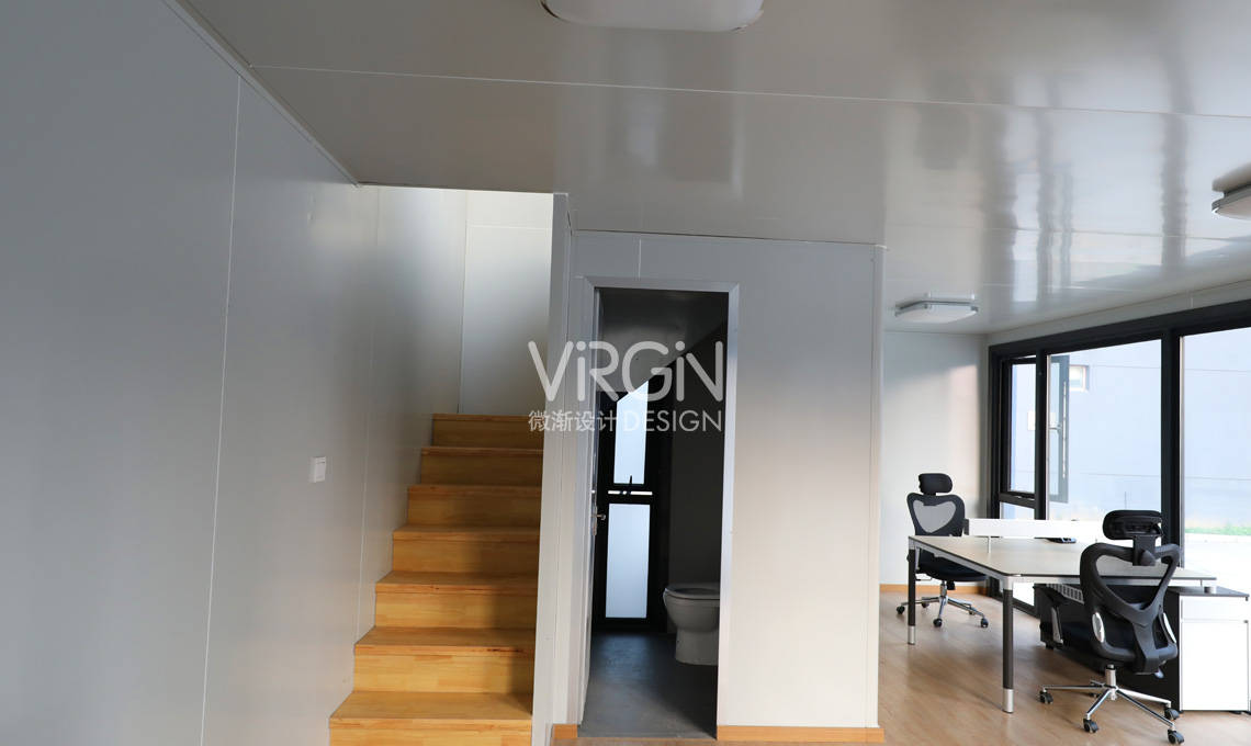 集装箱办公室不仅在外观上独具特色,在内部空间布局上也别具匠心。通过合理的划分,将办公区、会议区和休息区有机地融合在一起。灵活多变的空间设计为员工提供了更为舒适和高效的工作环境。而位于二层的露台更是为员工提供了一个欣赏城市美景的休憩场所,为办公室生活注入了一份宜人的情趣。